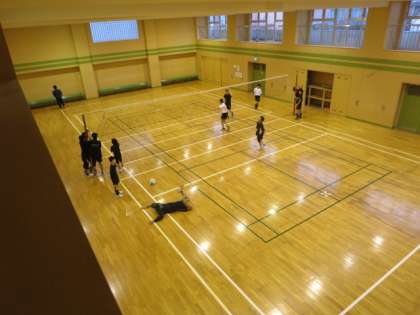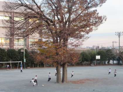 サッカー部、野球部、男子バレーボール部の放課後の部活動の様子です。野球部は、体力アップのため、サッカーボールを使って練習を行っています。
