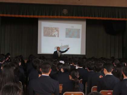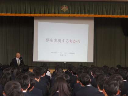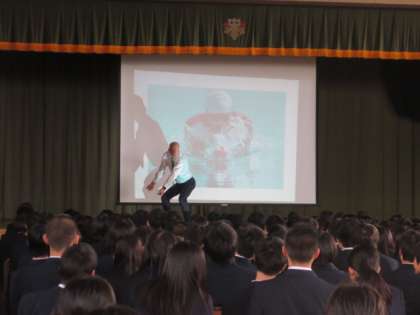 本日5校時に、水泳指導者の不破 央 様を講師としてお招きして、オリンピック・パラリンピック教育の講演会を実施しました。「夢を実現するちから」というテーマで、御講演していただきました。夢を実現する6つのちからとして、☆興味力☆智力☆体力☆挑戦力☆表現力☆協力が必要であることを、御自身の体験から分かりやすく、かつ熱心にお話をしていただきました。また、コンプレックス力を鍛えると自分の武器になり、個性となるということも教えていただきました。約1時間という短い時間の中で、中身の濃い貴重なお話を聞くことができたことは、中学生にとって、2020年に開催される「オリンピック・パラリンピック東京大会」に向けての意識が高まり、今の自分を見つめ直す良い機会となりました。