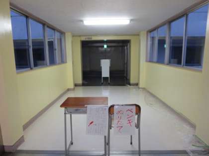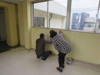 学校主事が、体育館と北校舎の渡り廊下壁のペンキを塗りなおしています。とてもきれいな状態になりました。緑丘中学校の生徒たちが、気持ちよく学校生活を送ることができるよう、多くの大人たちが支えています。