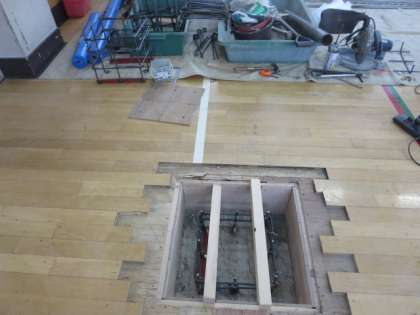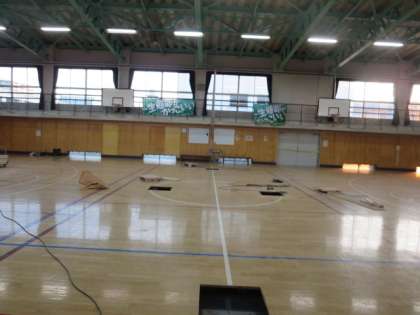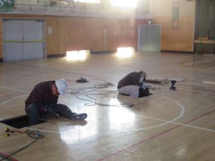 体育館床の工事が1月5日(木)から行われています。業者の方が朝7時前から来校して作業を行っています。バレーボールの支柱を入れる穴の補修作業です。工事期間中体育館は使用禁止となっています。昨日は、バドミントン部が上北沢小学校の体育館をお借りして、活動をさせていただきました。ありがとうございました。1月9日(月)には、工事が終了するので、1月10日(火)の3学期の始業式は、体育館で実施できます。