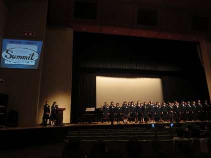 第11回「14歳の成人式」が世田谷区民会館で開催されました。世田谷区の全29校の中学2年生の生徒代表が、ブロックごとに各学校の生徒会の取組などについて話し合い、「生徒会サミット」活動を行い、どうすれば中学校生活がより豊かなものになるのか、何が実践できるのかなどについて、昨年の7月から、毎月1回程度の会議・打ち合わせを行って、本日の「14歳の成人式」で発表しました。今年度は、「社会とのつながり〜14歳 今、私たちにできること〜」がテーマでした。各校での挨拶運動、地域とのつながり、やさしさの連鎖などについて、劇を交えて発表しました。本校からも2年生の代表生徒2名が参加し、自分の役割を果たして、立派に発表していました。また、本校から26名の1年生が参加し、2年生の発表を見ましたが、1つ年上の先輩たちが深いく考えていることを知ったことや、堂々と発表している姿を間近に見ることができた経験は、これからの学校生活に必ずや生きることでしょう。中学生の純粋な気持ちや考えが伝わった、気持ちの温かくなる「14歳の成人式」でした。