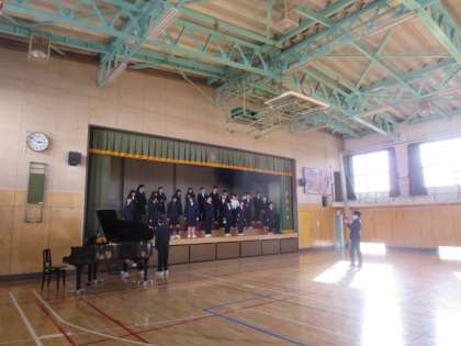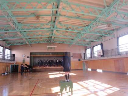 1年生が、体育館と音楽室で合唱の練習をしている様子です。練習を重ねるにつれて、どんどん上手になっていくことが期待できます。