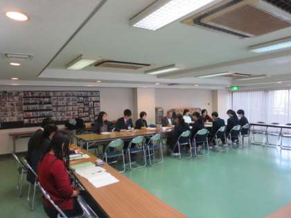 経堂地区青少年委員会と緑丘中学校生徒会との交流会を、ミーティングルームで行いました。自己紹介の後、青少年地区委員会についての説明、ボランティア活動などを通した中学生とのかかわりなどについて話がありました。そして、意見交流会では活発な意見交換が行われました。