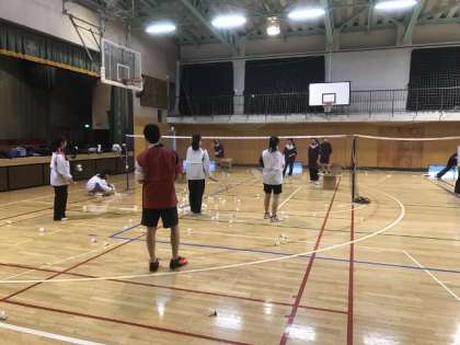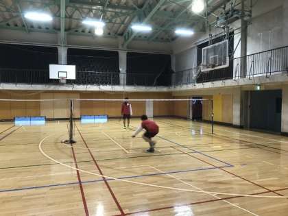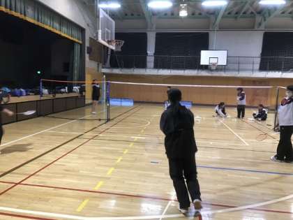 バドミントン部の練習の様子です。少しでもうまくなれるように日々練習を頑張っています。フットワークとラリーをしています。