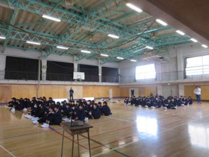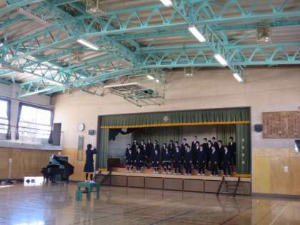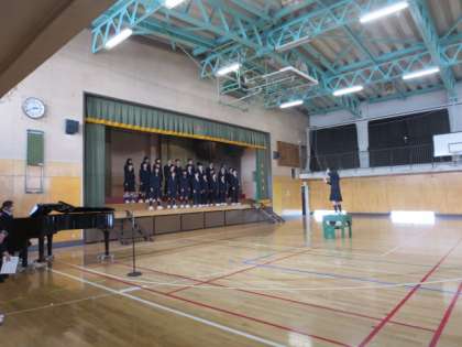 合唱コンクールの体育館での練習の様子です。合唱コンクールまで1週間を切り、各クラスとも練習に熱が入ってきました。聞いている生徒たちも真剣です。