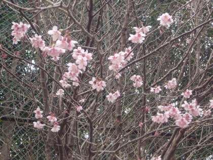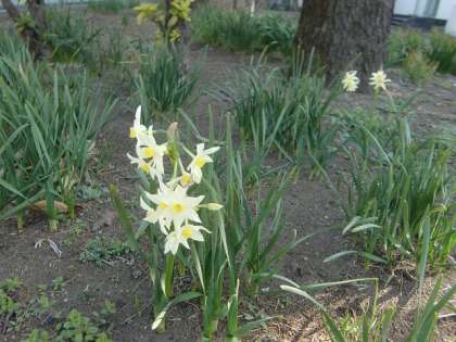 本校には、シンボルツリーのケヤキをはじめ、多くの草木があり、緑豊かな自然が維持されています。敷地内に咲く花の一部を紹介します。中庭のあんず(写真左)、北校舎裏の水仙、校庭東側・サッカーゴール裏の桜です。