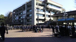 本番まで約1時間、練習にも熱が入ってきました。区民会館ホール前に気持ちの入った歌声が響いています。