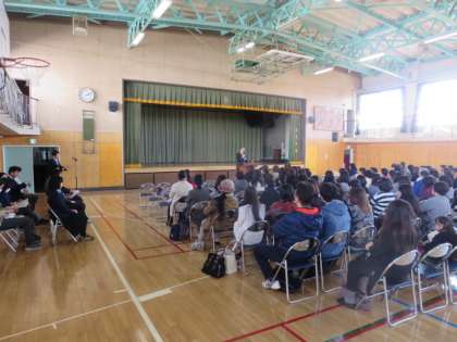 3学期末の1,2年保護者会を実施しました。(3年は卒業式前の3月13日(月)に実施済みです。)学校長のあいさつの後、教務主任、生活指導主任からの話がありました。その後、学年別に分かれて、学年別懇談会を行いました。1,2年合わせて110名の保護者の方が来校していただきました。