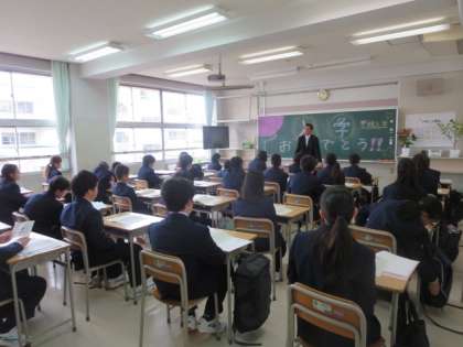 入学式後の、1年生の学活の様子と校庭の桜です。