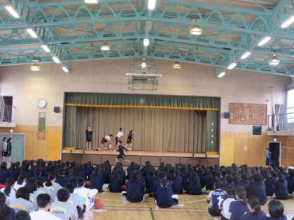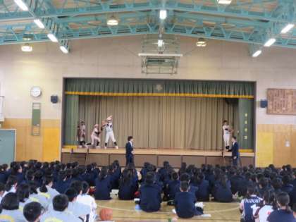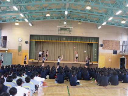 野球部と陸上部、男子バレーボール部の部活動紹介の様子です。