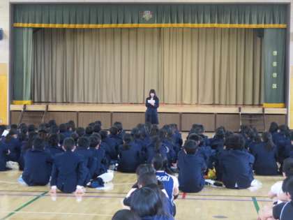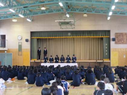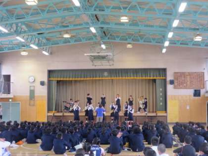 みどりのボランティア部と吹奏楽部の部活動紹介と、STEP「日本舞踊」の紹介の様子です。