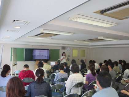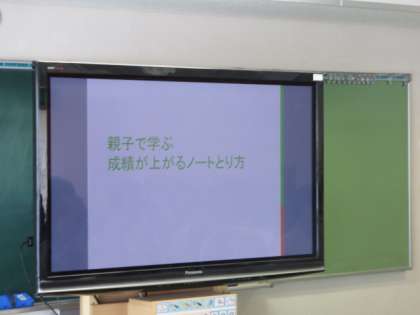 第1回家庭教育学級を開催いたしました。フリーライターの太田あや先生を講師としてお招きして、「親子で学ぶ 成績が上がるノートのとり方」という題名で講演を行っていただきました。講師の先生からは、ていねいで分かりやすく、ノートの取り方について説明していただき、出席した方々にとって、とても有意義な時間を過ごすことができました。今回の家庭教育学級には、世田谷区教育委員会社会教育指導員の先生、49名の保護者と生徒、本校管理職が参加しました。