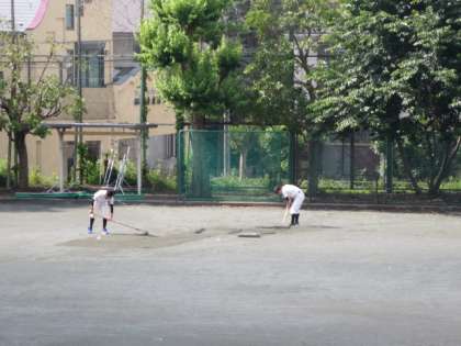 部活動の様子 公開日 2017/05/27 更新日 2017/05/27 今日のできごと 野球部の生徒2人が、活動が始まる時刻より早く登校し、グランド整備を黙々と行っている様子です。昨日降った雨により、グランド状態が良くなかったため、野球部の仲間がけがをしないよう、少しでも気持ちよく練習ができるよう、自主的に早く登校してグランド整備を行っていました。このような”縁の下の力持ち”のような行動ができることが本当の意味での「一生懸命がかっこいい」につながります。 いいね(0)