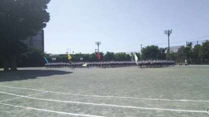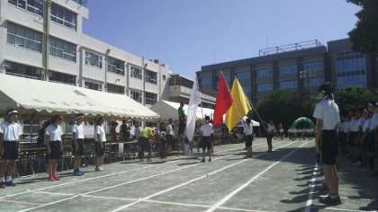 開会式の様子です。今年度の体育大会のスローガンである「欅に魅せろ 熱き戦い」を意識して、生徒たちの一生懸命な体育大会が始まります