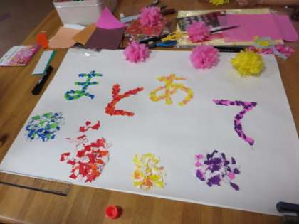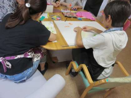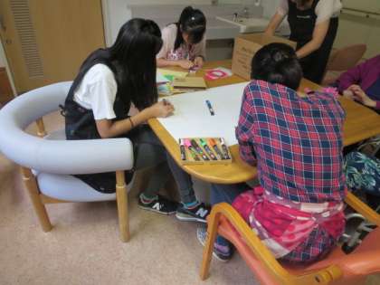7月1日(土)に、青少年松沢地区委員会の主催による老人ホーム上北沢ホームのボランティア活動があり、4名の生徒が参加しました。今回のボランティア活動は、7月30日(日)に開催される、「第18回 上北沢ホーム納涼祭」の出し物である、「ヨーヨー釣り」と「まとあて」の看板つくりでした。生徒たちは、折り紙を折った飾りつくりをしたり、紙をちぎって文字を表現するなど、ホームの方たちと一緒に工夫をしながら、一生懸命に看板つくりをしていました。