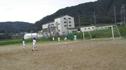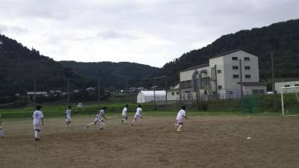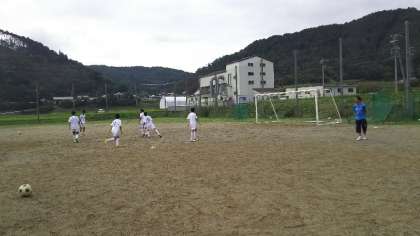 サッカー部の練習の様子です。涼風が吹いていて、よい環境の中練習をしています。