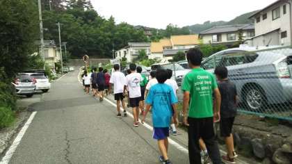 部活動合宿29 公開日 2017/07/28 更新日 2017/07/28 今日のできごと 部活動合宿3日目、近くの神社まで散歩をしている様子です。朝はあいにくの霧雨が降っています。今日も熱中症やけがに気を付けて練習を頑張ります。 いいね(0)