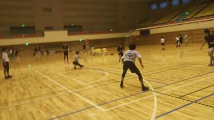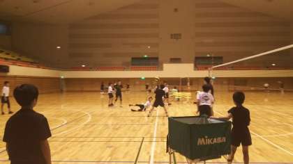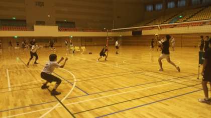 部活動合宿3日目、バレーボール部男子の練習の様子です。顧問の先生とコーチのげきがとびます。部員たちは懸命にボールに食らいついています。体育館が広く、とても良い条件で練習ができています。