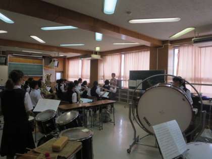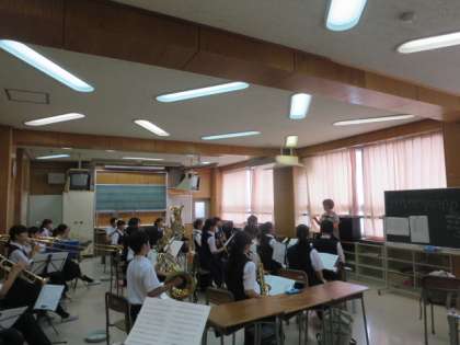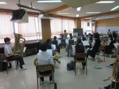 本日、府中の森芸術劇場で行われる東京都中学校吹奏楽コンクールの出場に向けて、練習をしている様子です。生徒たちは、最後の仕上げとして真剣に練習に取り組んでいます。