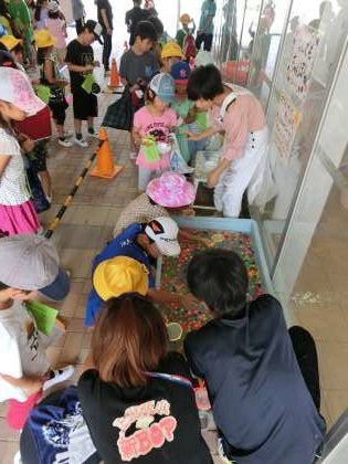 8月29日に上北沢小学校新BOPで、ミニえんにちが行われ、本校のボランティア部の9名がお手伝いに参加しました。シャボン玉、ヨーヨー釣り、スーパーボールすくい、シュートゲーム、お手玉投げなどのお手伝いをしました。児童たちは、とても楽しんでいました。