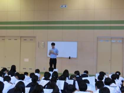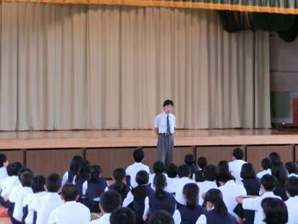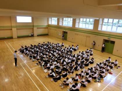 1年生と2年生が学年集会を行いました。1年生は、10月に行われる河口湖移動教室についての説明、2年生は2学期の生活についての話が担当の先生からありました。1・2年生とも、先生たちの話を真剣に聞いていました。