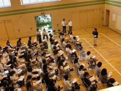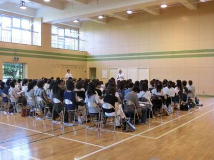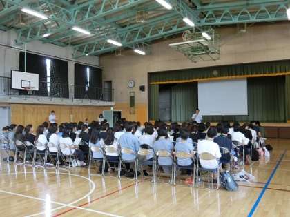 修学旅行保護者説明会を格技室、移動教室保護者説明会を体育館で行いました。日程や注意点などについて、担当教員から説明を行いました。修学旅行、移動教室とも、生徒たちは実行委員会を中心にルール決めなどをし、事前学習を行って、思い出に残る宿泊行事になるよう、頑張っています。