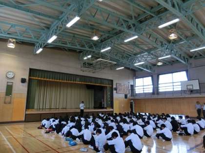 1年生移動教室しおりの読み合わせ 公開日 2017/10/02 更新日 2017/10/02 今日のできごと 1年生が移動教室のしおりの読み合わせを体育館で行いました。日程の確認や生活の決まりなどを確認しました。生徒たちは真剣に担当の先生の話を聞いていました。 いいね(0)