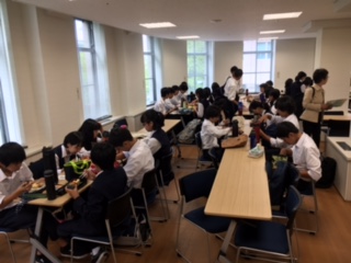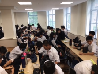 3、4組がニュースパークに集合し、昼食を食べてから体験学習を行ないます。