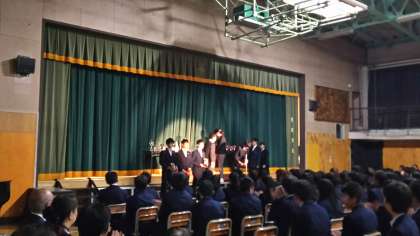 学芸発表会1 公開日 2017/10/28 更新日 2017/10/28 今日のできごと 学芸発表会開会式の様子です。実行委員長の話があり、校長先生の話の中で、創立70周年記念に送られたPTAからのトロフィーの紹介と体育大会でのトロフィーの授与を行いました。 いいね(0)