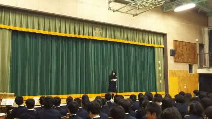 閉会式の様子です。実行委員長の話と校長先生の話です。今回の学芸発表会では生徒たちは舞台発表のときはマナーよく見学し、作品展示見学は熱心に見学していました。創立70周年記念学芸発表会にふさわしいものとなりました。