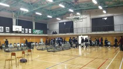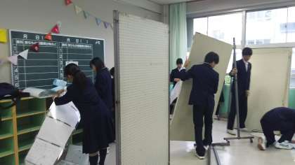 創立70周年記念学芸発表会が終り、片付けをしている様子です。緑丘中学校の生徒たちは最後まで一生懸命に取り組みます。
