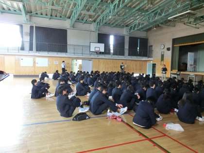 3年生面接全体指導 公開日 2017/10/31 更新日 2017/10/31 今日のできごと 3年生が面接の全体指導を体育館で行いました。先日の土曜日には創立70周年記念学芸発表会で最高学年として立派な姿を見せてくれた3年生は、これからは自分の進路の実現に向けて頑張っていきます。全体指導では、進路担当の教員からの話、面接についてのDVDを見た後、3年担当の教員が良い面接の例と悪い面接の例を分かりやすく表現していました。 いいね(0)