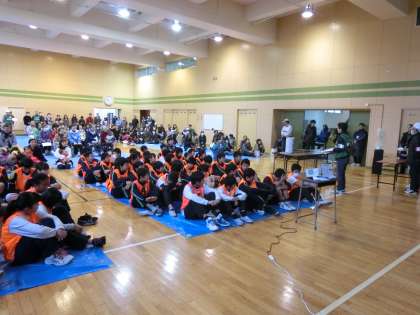 第11回緑丘中学校避難所訓練の開会式の様子です。