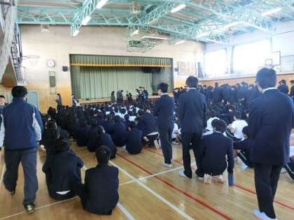 避難訓練 公開日 2017/11/24 更新日 2017/11/24 今日のできごと 本日4校時に不審者侵入における対応と避難方法を確認する避難訓練を行いました。生徒たちは、教職員の指示のもと、私語もなく、落ち着いた行動を行うことができました。 いいね(0)