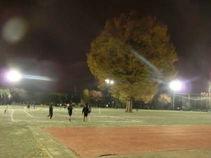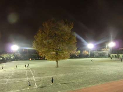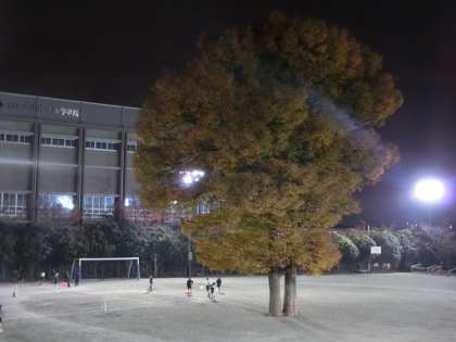 寒空とけやきの下で部活動を行っている様子です。生徒たちは懸命にボールを追っています。