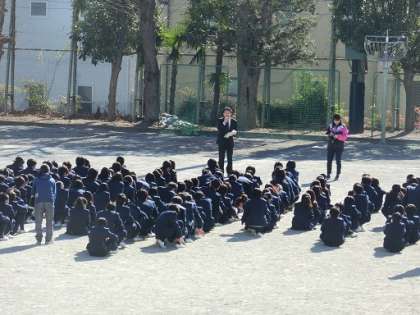震度5の地震が発生し、火災発生を想定した避難訓練を行いました。今回の避難訓練では、緊急地震速報を放送した後の避難でした。生徒たちは教員の指示に従い、迅速にかつ冷静に訓練を行いました。校庭に集合した時も担当の教員の話を静かに真剣に聞いていました。このような姿勢が、災害が発生した時に役立つはずです。