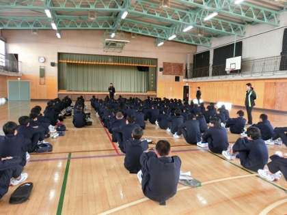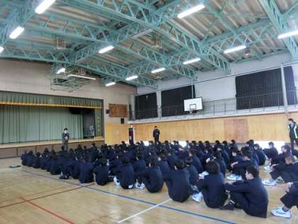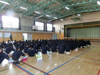 2年学年集会 公開日 2018/01/13 更新日 2018/01/13 今日のできごと 1月12日(金)の6校時に2年生が学年集会を行いました。学習について、生活について、職場体験(1月31日〜2月2日)について、担当の先生が話をしました。生徒たちは、真剣に先生の話を聞いていました。 いいね(0)