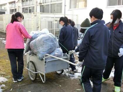 2年生の職場体験が本日より3日間行われています。地域の皆様のご協力で47事業所で体験をさせていただきます。生徒にとって実り多い体験となることと思います。写真は本校学校主事の仕事を体験している様子です。校内の木を剪定して剪定した木を所定の場所に運んでいます。