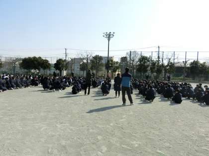 避難訓練 公開日 2018/02/15 更新日 2018/02/15 今日のできごと 避難訓練を行いました。強い地震が起きた場合を想定した訓練でしたが、生徒たちには予告なしで行いました。訓練の放送が入ると、生徒たちは周りを確認して、身の安全を確保できる場所で座って待機しました。その後、放送の指示で校庭に避難して人員点呼を行いました。生徒たちは、前回に比べ早くに整列をして、私語もなく迅速に行動することができました。 いいね(0)