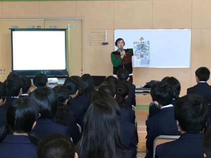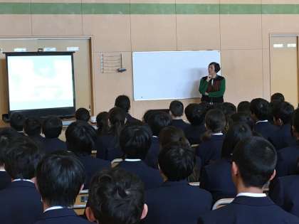 3月10日(土)に1年生が、毎日新聞社教育事業本部教育事業担当部長の戸澤美佐さんを講師に招いて職業講話を実施しました。新聞社の仕事、適性、やりがいなどについて、お話していただきました。いろいろな職業調べの中、自分の将来を考える機会になったと思います。