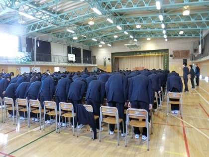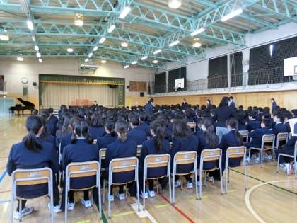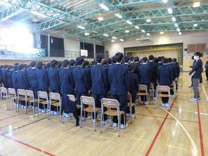 卒業式に向けての在校生の練習です。「起立、礼、着席」も息が合うようになってきました。