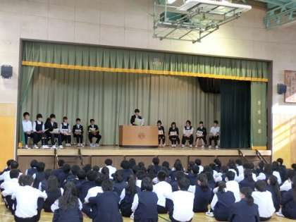 生徒総会リハーサル 公開日 2018/04/26 更新日 2018/04/26 今日のできごと 5月2日(水)に行われる生徒総会のリハーサルを行いました。担当の先生から当日の流れの確認と、注意する点についての話がありました。生徒たちは、緊張しながらも真剣にリハーサルに取り組んでいました。 いいね(0)