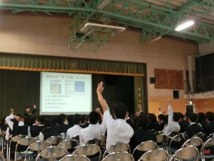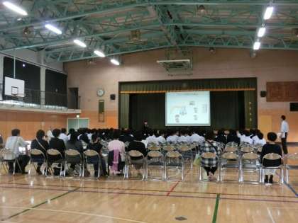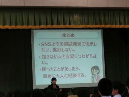ネットリテラシー醸成講座 公開日 2018/05/12 更新日 2018/05/12 今日のできごと 1年生がネットリテラシー醸成講座を受けました。講師の先生から、インターネットを安全に使うために注意することなどについて、パワーポイントやワークシートなどを活用して、分かりやすく教えていただきました。生徒たちは真剣に先生の話を聞いていました。保護者の方の参加もありました。 いいね(0)