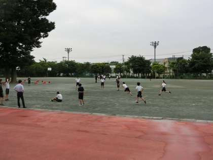 体育大会に向けて、朝練習をしている様子です。バトンパスの練習です。