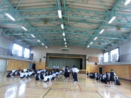 河口湖移動教室 事前指導 公開日 2018/05/18 更新日 2018/05/18 今日のできごと 1年生が、5月21日(月)から2泊3日で行く、河口湖移動教室の事前指導を行いました。担当の先生から行程、注意すべき点などの話があり、養護の先生から健康面についての注意がありました。また、整列の仕方の確認を行いました。生徒たちは、真剣に先生の話を聞いていました。 いいね(0)
