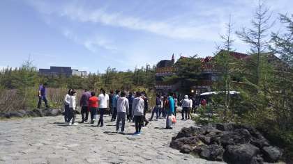 富士山五合目に到着しました。トイレ休憩をして奥庭に向かいます。