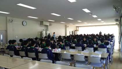 河口湖移動教室2日目の朝食です。たくさん食べて、今日も一日頑張ります。