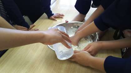 河口湖移動教室28 公開日 2018/05/22 更新日 2018/05/22 今日のできごと うどん作りです。小麦粉の量に応じた塩水を混ぜてよくこねて、うどんのたねを作ります。生徒たちは真剣に楽しそうにうどんをこねています。出来上がりが楽しみです。 いいね(0)