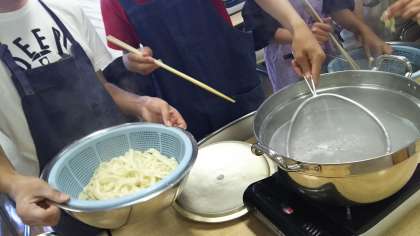 河口湖移動教室32 公開日 2018/05/22 更新日 2018/05/22 今日のできごと うどん作り。うどん作り最後の工程。うどんを茹でているところです。このあと、自分たちで作ったうどんを美味しくいただきます。 いいね(0)