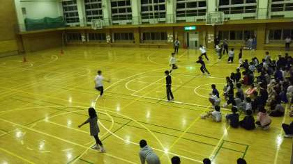 河口湖移動教室34 公開日 2018/05/22 更新日 2018/05/22 今日のできごと 河口湖移動教室2日目夜、レクリエーションの様子です。全員リレー、縄跳びとボールを使ったリレー、バスケットボールのドリブルと豆を移すリレーを行いました。生徒たちは楽しそうに真剣に競技を行っていました。 いいね(0)